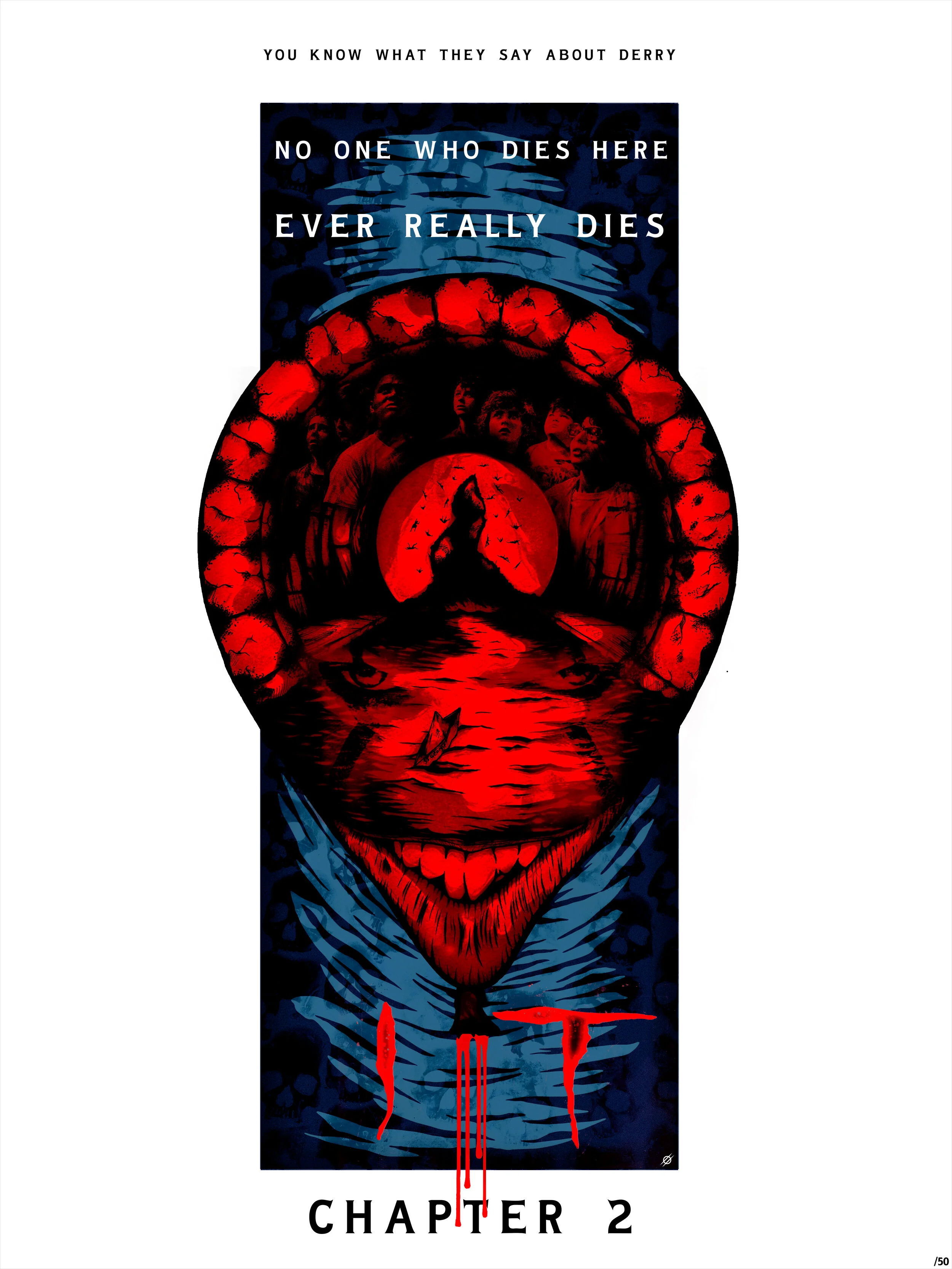 Zobie Productions commissioned this design for the release of the film “IT: Chapter 2”. These were printed on double-weight, archival matte paper, with a limited run of 50 posters. This was officially licensed artwork.